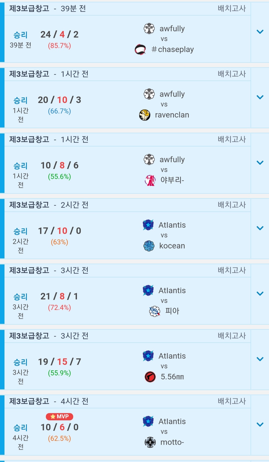 awfully클랜 바날리끼고 연승중