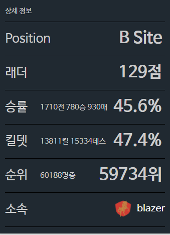 47.4% 쏘던 B포지가 아무리 새 계정이라 하여도 66.3% 달성