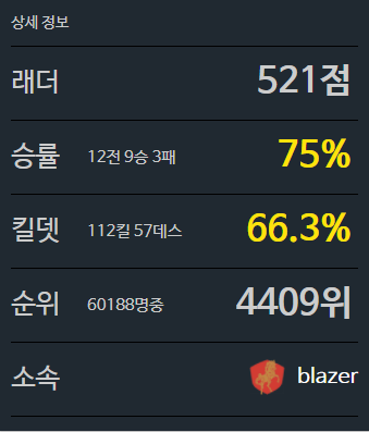 위에 스크린샷은 본인의 가장 많은 전적 스샷이다