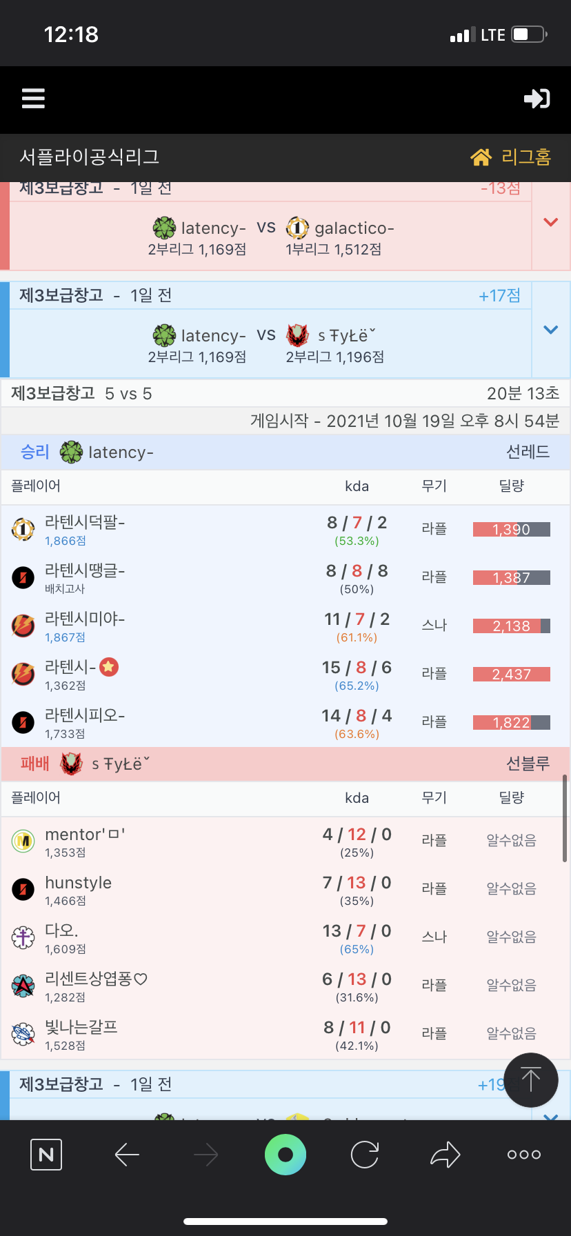 내가 맞았다 쳐도 맞은건 빌린인원한테 쳐맞은게 맞을듯 라텐시한테 맞았다?저기서 빌린인원들이 몇승 몇패를한진 몰라도 승률 30퍼대인대 10판을해도 3판이겼다는건데 그 3판에 속하기도 힘들듯