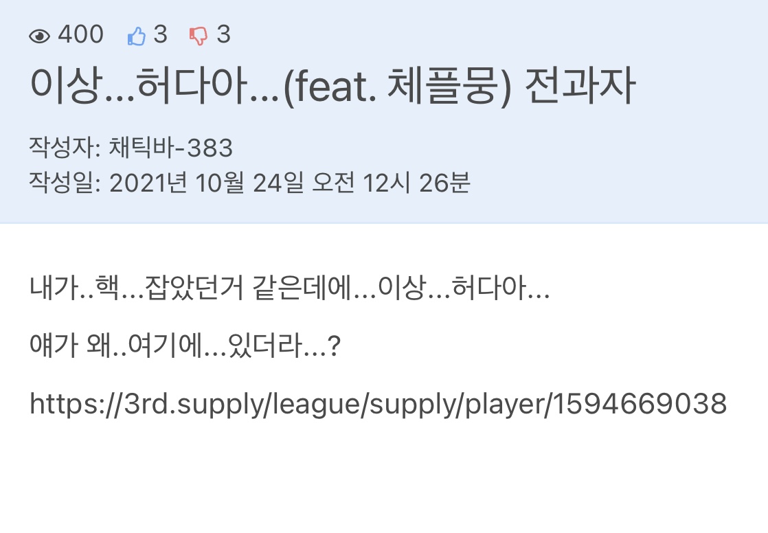 눈달고있으면 봐 병신아 1부리센트더만 ㅋㅋㅋ 이런새끼들이 전적관리 ㅈ빠지게하고 30%나오는 개만도못한새끼가 ㅋㅋ