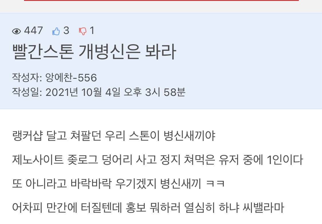 그거말고 지금 주작글이 뭐가 있는데 멍청한 새끼야 ㅋㅋ