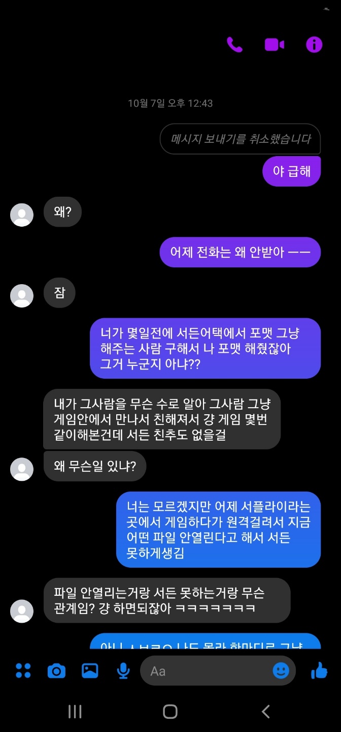 원격이 끝난 후 맑음님과 따로 디코로 말을 나눴습니다 저파일이 왜 안열리는지는 저도 잘모르겠다고  그래서 제가 맑음님께 저 파일을 혹시 열어주실 수 있냐고 물어봤지만 맑음님께서 다른 원격을 하던 중이셔 원격을 다시 못했습니다 그래서 혹시 포맷을 했을 때 저렇게 하는 포맷러가 있냐고 여쭤보니 몇 있다고 저한테 포맷러 몇 이름을 알려주셨습니다. 그래서 친구한테 바로 연락했지만 친구와 저 둘 다 군인이고 그때 시간도 새벽이라 그 날 바로 해명을 하지는 못했습니다.
