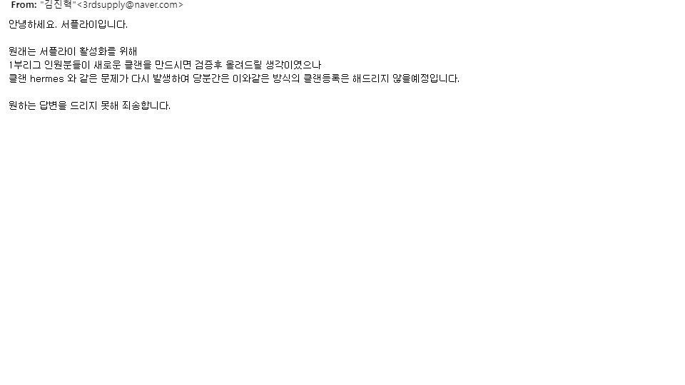 다른클랜 이렇게 올려주시는거면 공지 올려주시건 메일답변을 제대로 주시는게 맞는거같은데