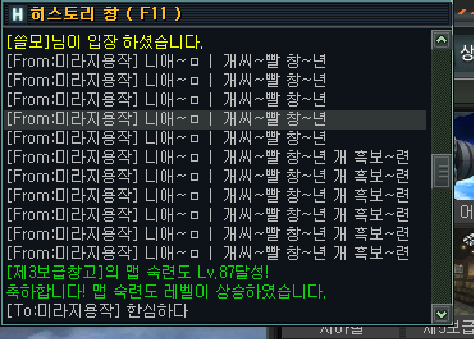 귓말 차단 안 하고 계속 욕할 때마다 시간 체크하고