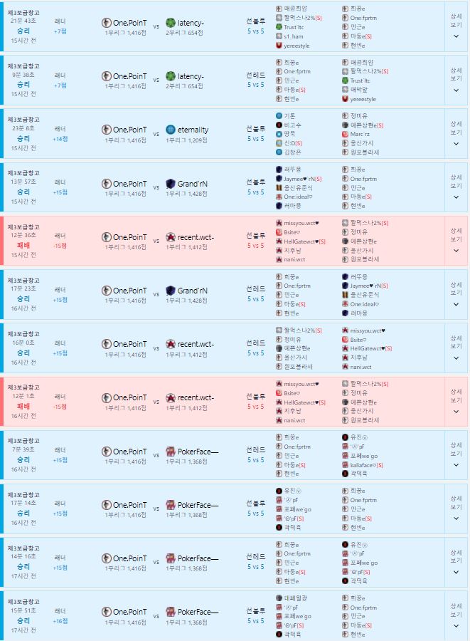 최근전적 14승 3패ㅋㅋㅋㅋㅋ심지어 한쪽팀은 무패임 ㅋㅋㅋㅋ