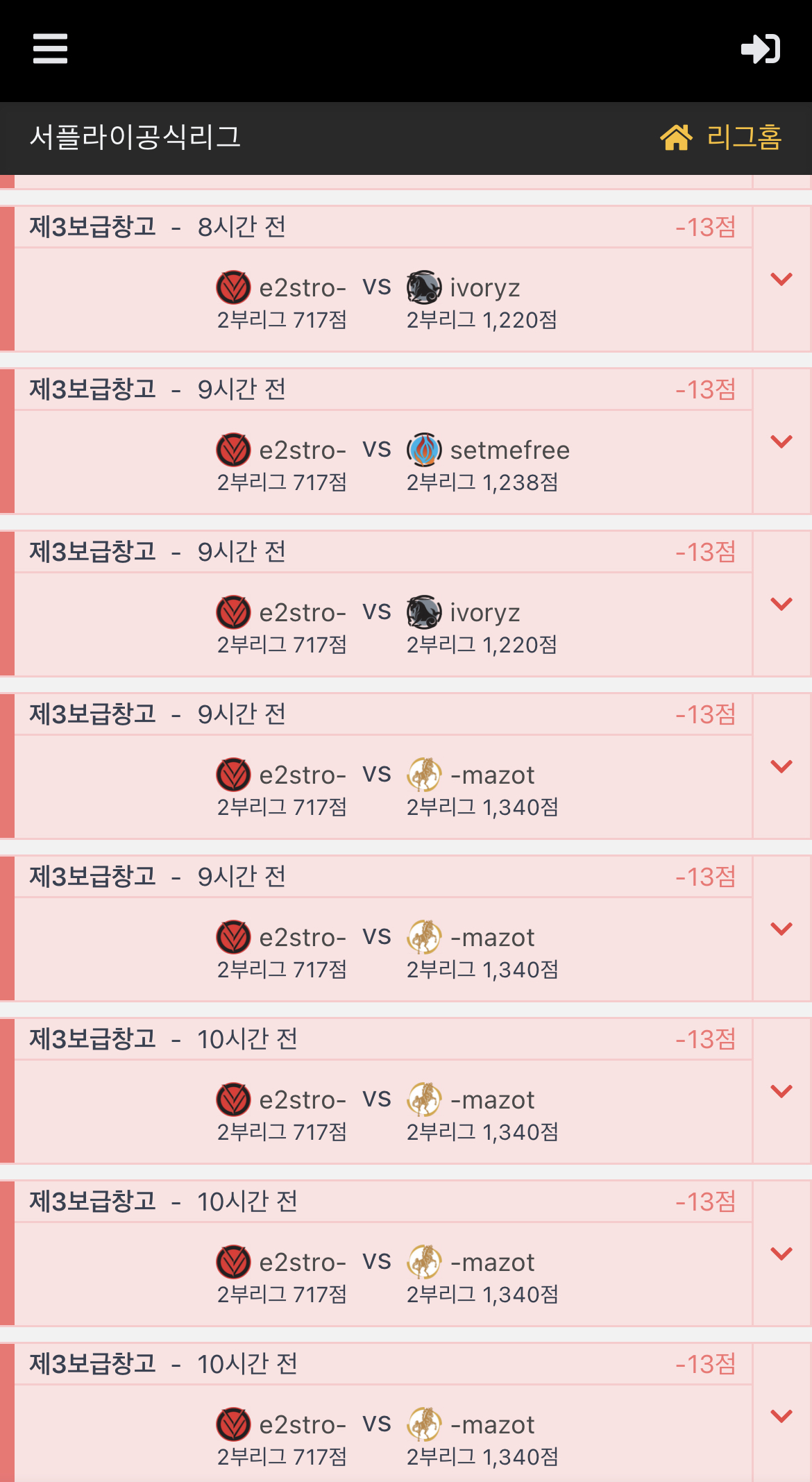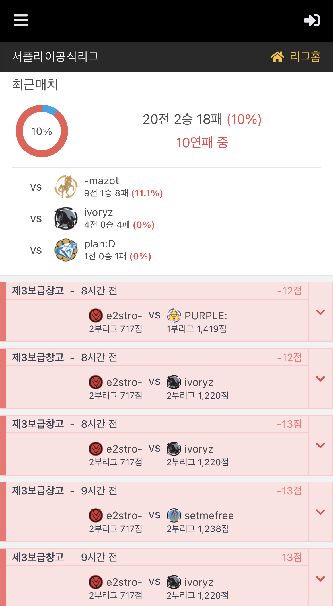 셋미프리처럼 1부랑 하는 것도 아니고 2부 중에서도 못하는애들이랑만 가려해도 이정도면 클랜 내려라 그냥.. 2승18패.... 라텐시보다 못해 너네