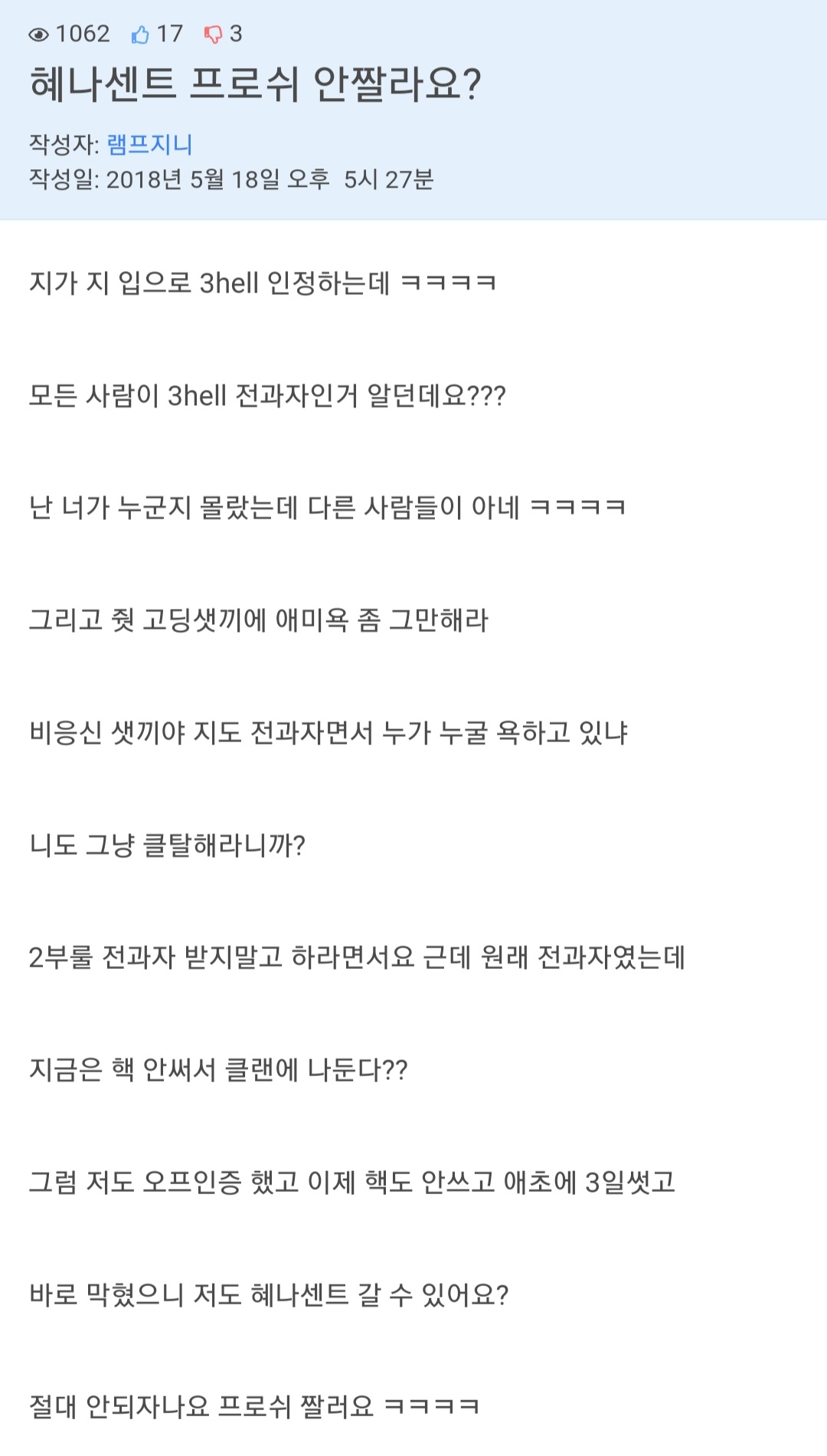 프로쉬님 인천 사시는거같은데 한번 만나시게 카톡 아이디좀여 패드립하는 버릇 고쳐드릴게요 씨발럼아