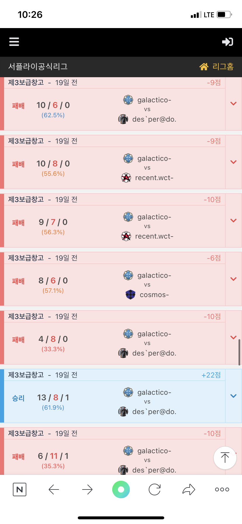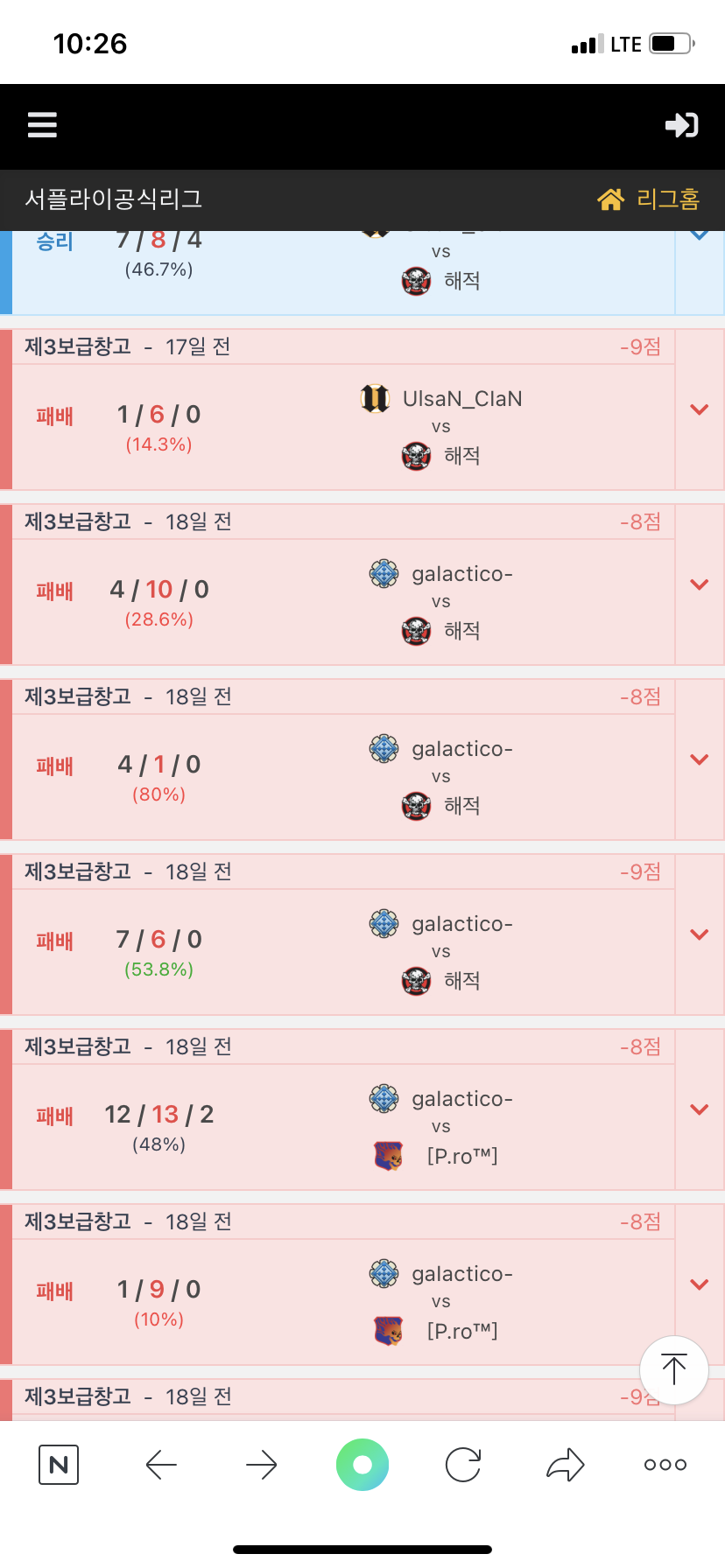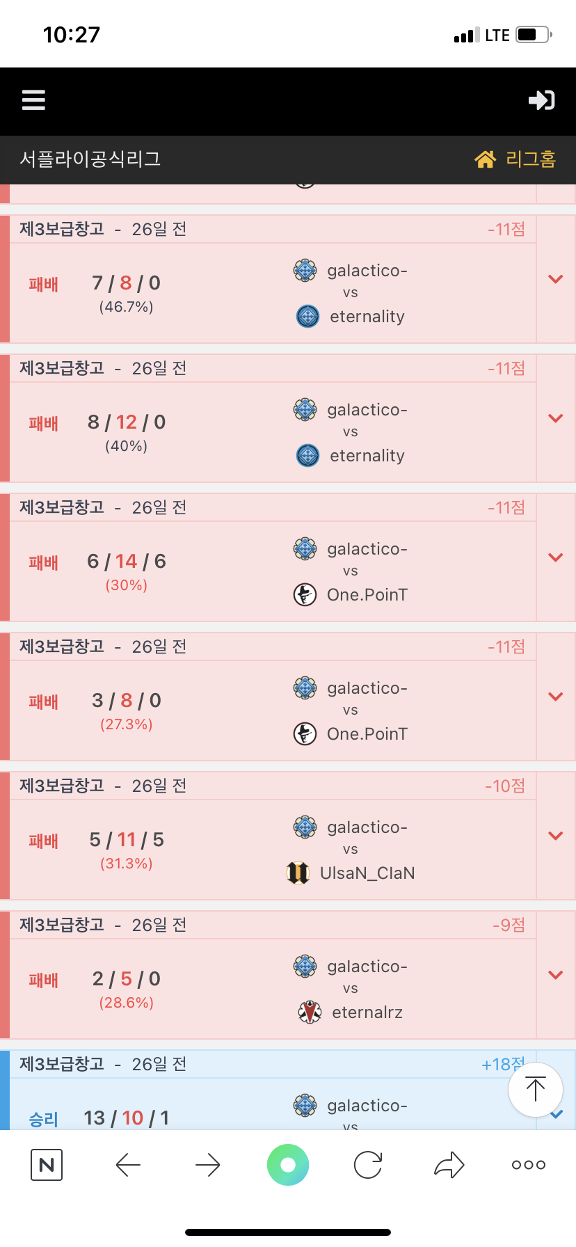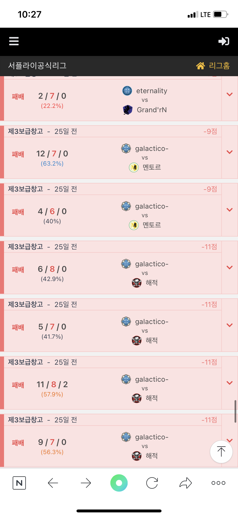 갈락티코 빌린결과 승률