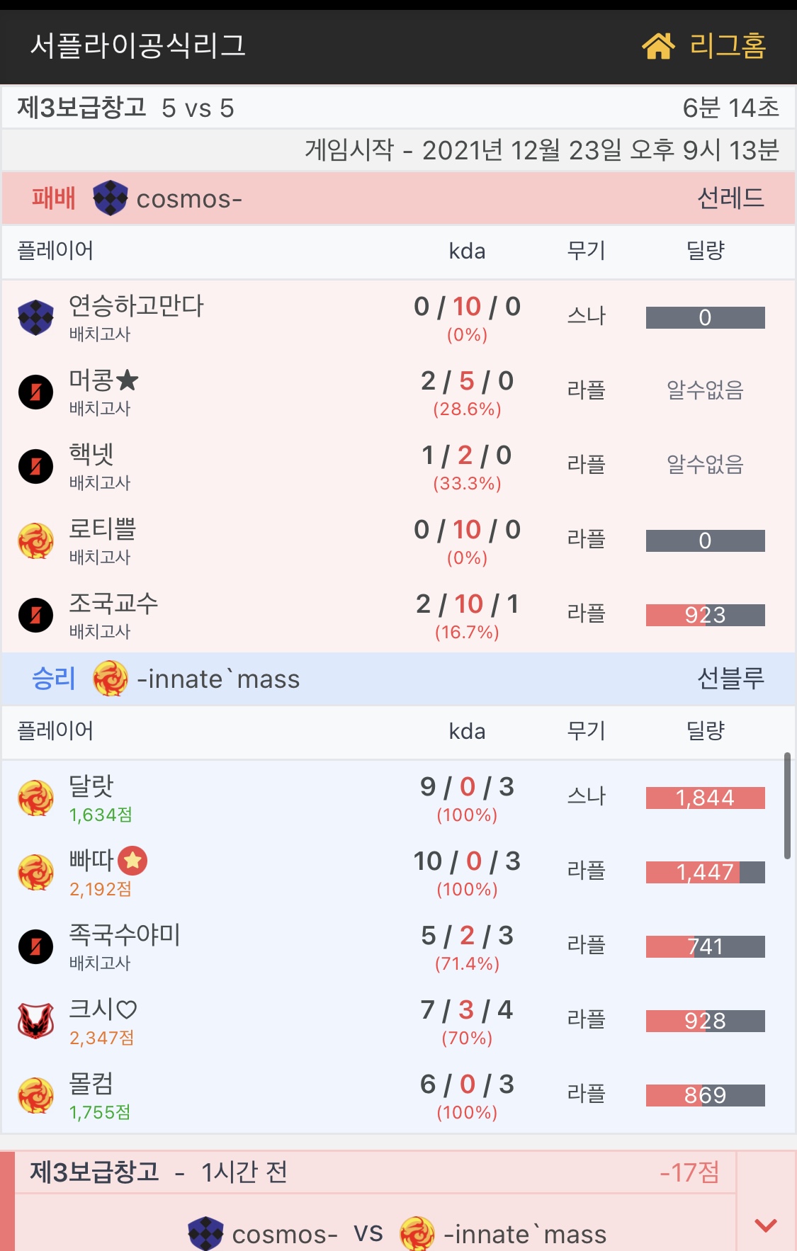 ㅋㅋㅋㅋ 코스모스,이네이트 클랜 내려갔노