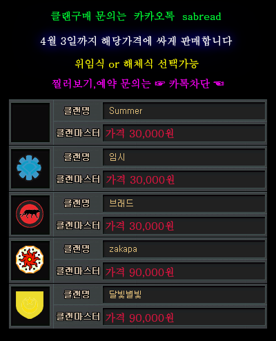 4월 3일까지 남은 닉네임/클랜 싸게 판매