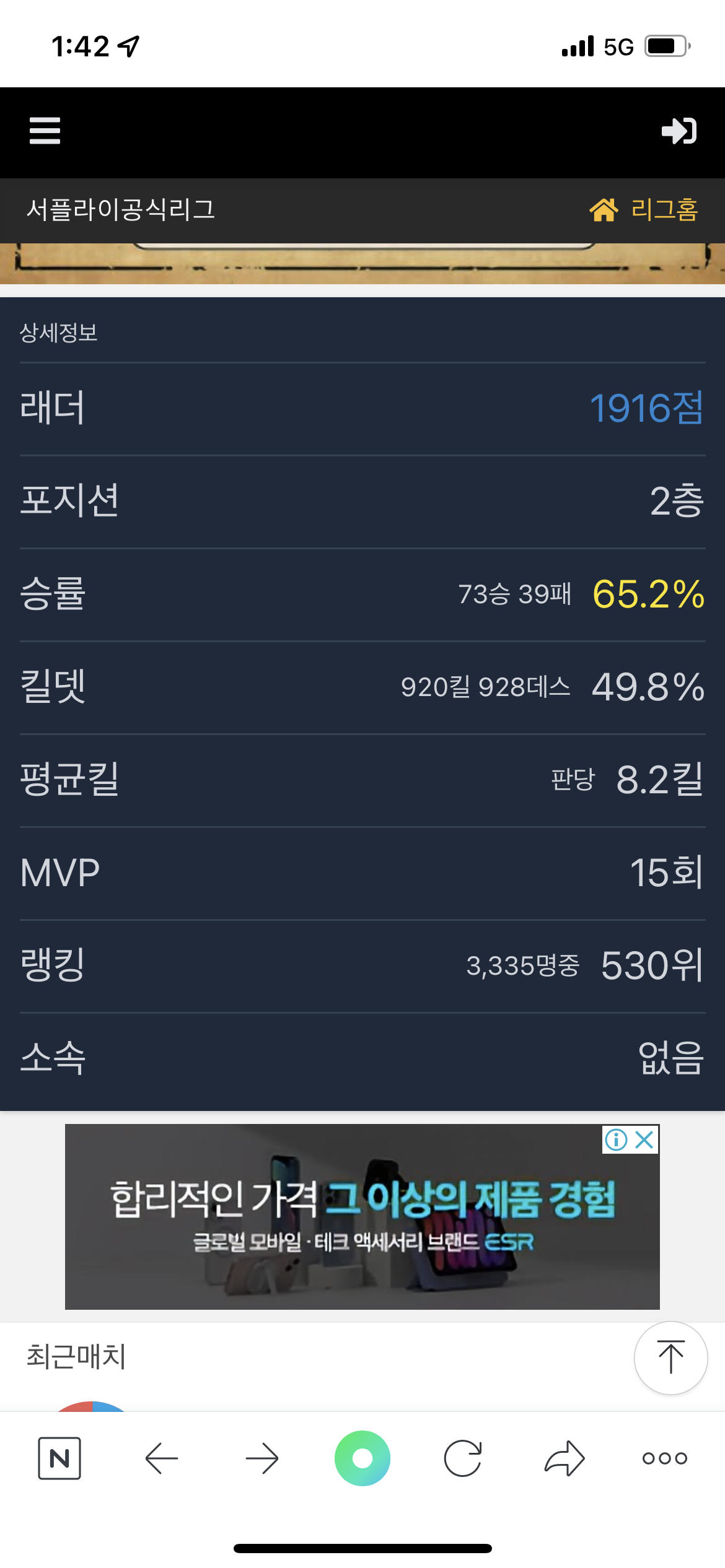 서플아이디 팝니다 랖수 65퍼 전적 130전