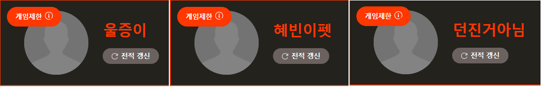 지금 본케로 겜중이니까 귓하십쇼 빈이펫 < 정지안당하고 너무멀쩡합니다 그리구저 계정들은 영정도 아니고 방송켜달라해서 예전에 방송키고 어느정도는 인증 해드렸으니 뒷뿍 그만치시구 서창짓 그만하세용글쓴사람 누군지 아는데 욕하든말든 신경안쓰니까요..