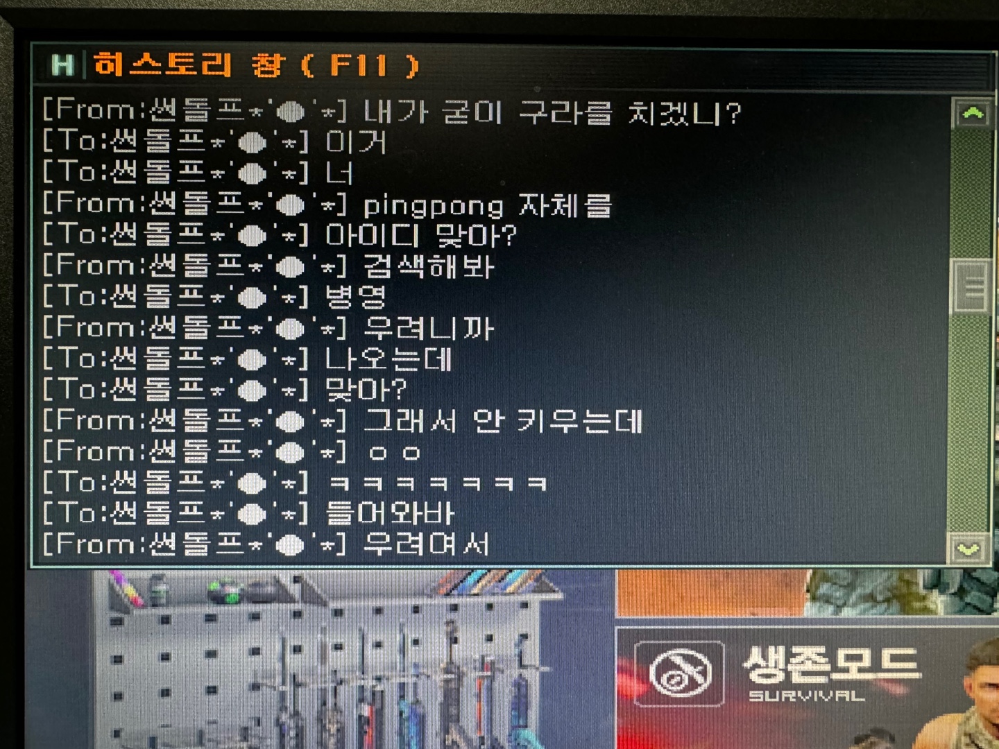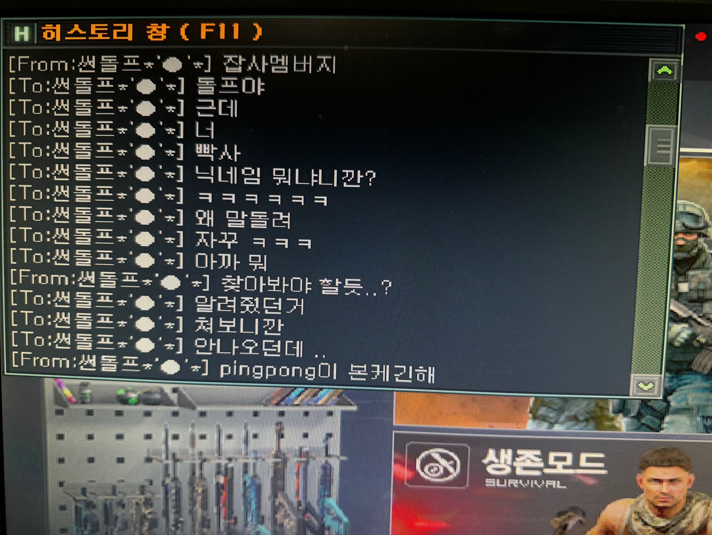 이분이 상대였는데 짭미라지라고 자꾸 그래서 이사람이 자기 빡사하는 사람이라고 머리세우길래 닉네임 뭐였냐고 하니깐 pingpong라고 사칭하고 메세 클마님한테 여쭤보니깐 메세클마님꺼 아이디라고 하시네요 ㅋㅋㅋㅋㅋㅋㅋ 엔지티 달고 천상계인척하시면서 방사로 짭미라지 컷 이러지마시고요 .. 사칭하지마세요 본인 아니시면 ..