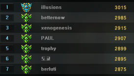 그때 5등찍길래 기록봤는데 핵끼고 겜하던데 ㅋㅋ 원래 벨루티 클랭 개못하고 골딱이 클랜이였는데 핵쟁이끼고 바로 연승해서 빨간별찍는거보고 역겹더라...