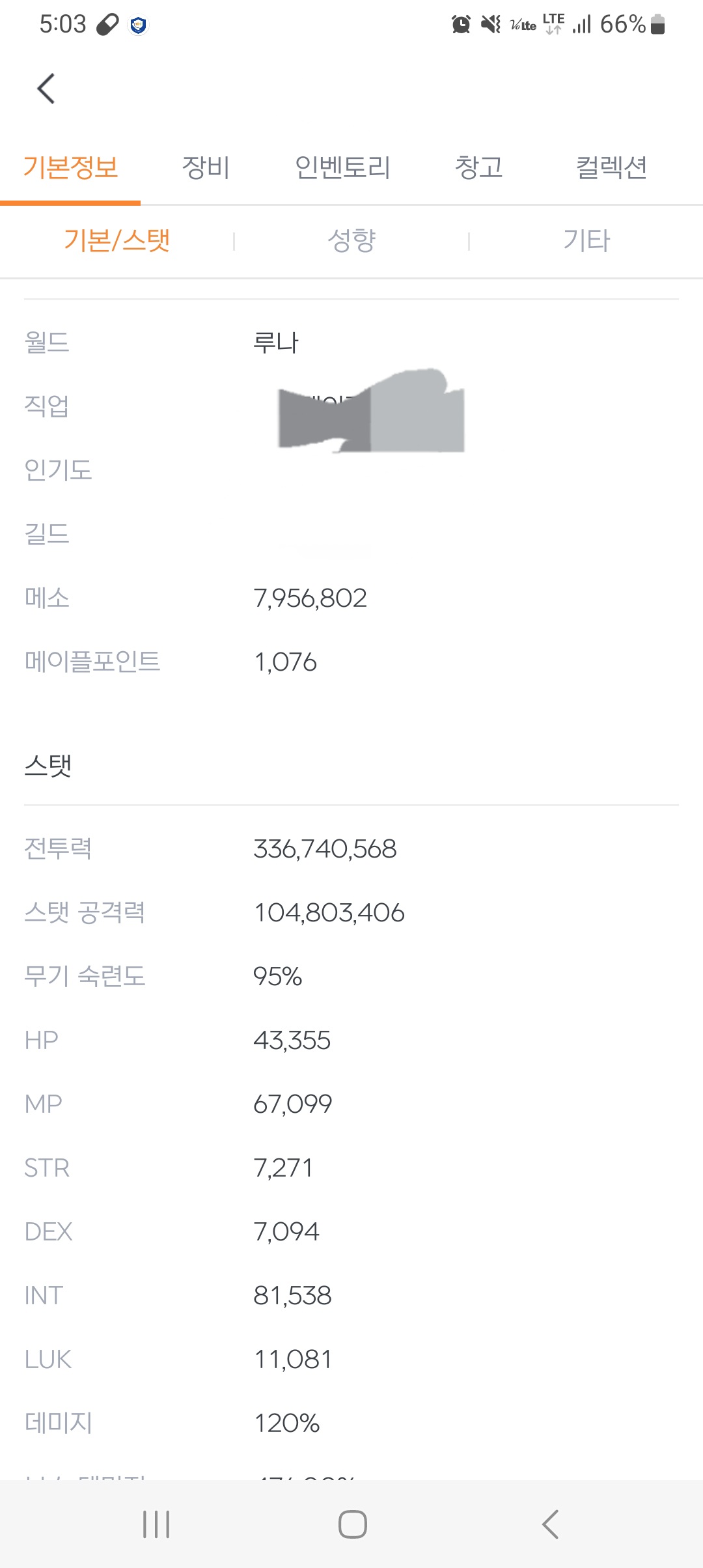 루나 287렙 투력3억3천 환산8.3만 인맥구해요