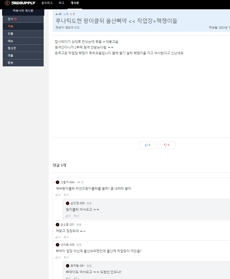 제발 산딱이들 서플와서 글좀 싸지르지말고 느그사이트로 가라