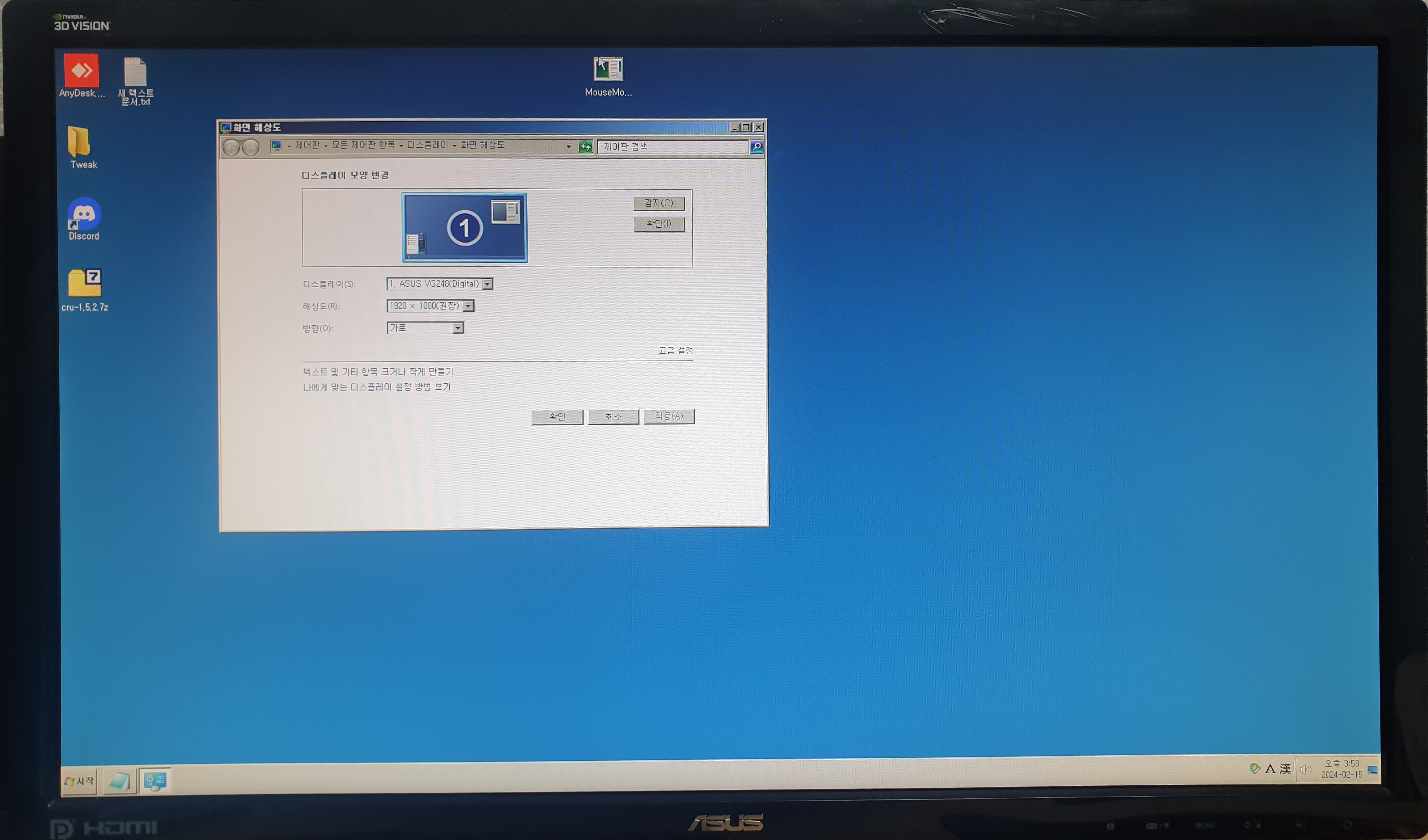 일반적으로 모니터의 기본 해상도와 동일하게 화면 해상도를 맞추게 되면