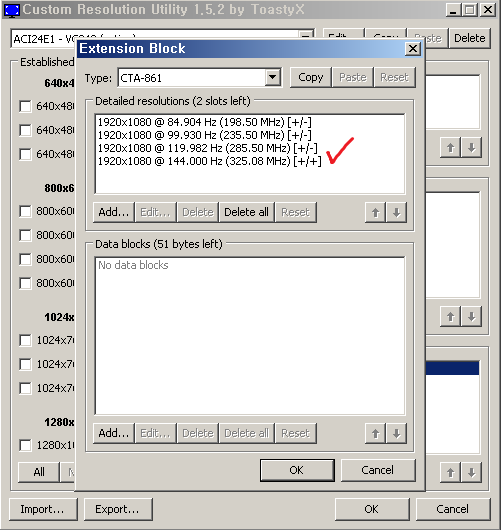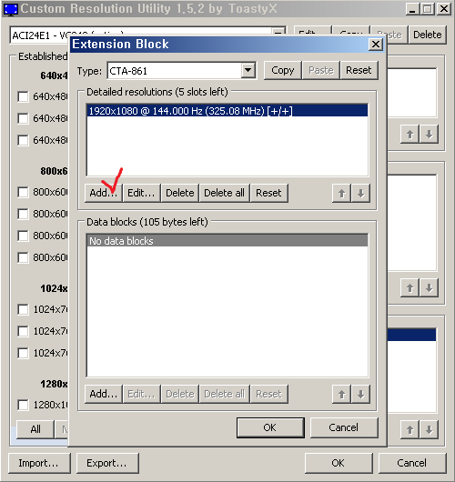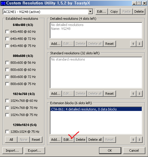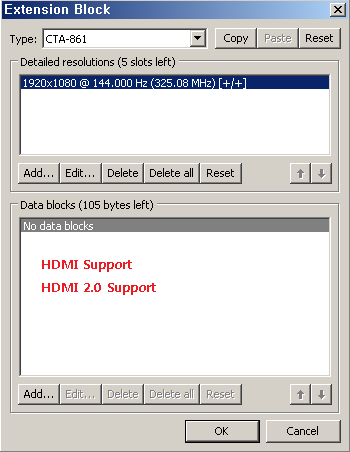 2. Extension block 탭에 CTA-861 Edit...(수정)를 누릅니다.