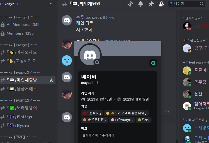 만남이가 디코 새로 팠대 근데 클원들 만남이 말 개무시하고 원래 디코 사용하는중 ㅋㅋㅋ