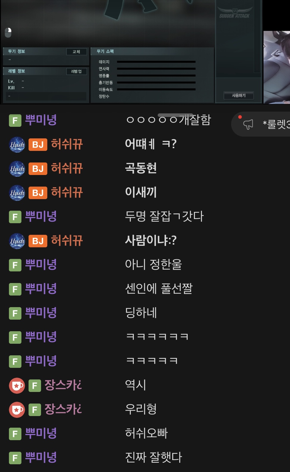 이새끼 빡사안하고 잡사만 한다해서 클랜 안짤렸는데 랭크전하네