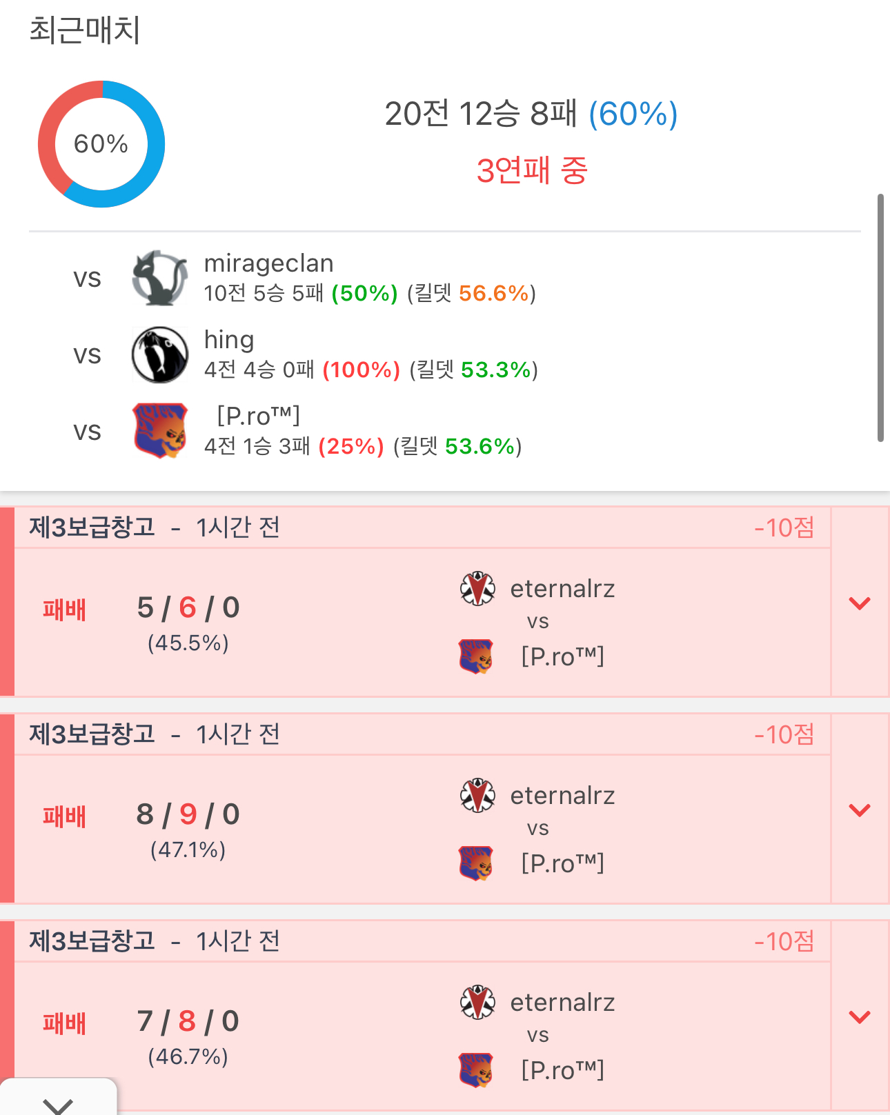 실시간 전과자 지민스나(하라이) VS 피로겨울