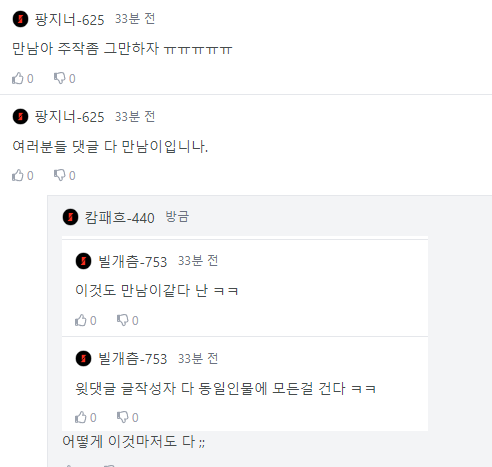 로꼬도 빡쳐서 동시에 만남이 주작한다는 댓글을 동시에 여러개씀