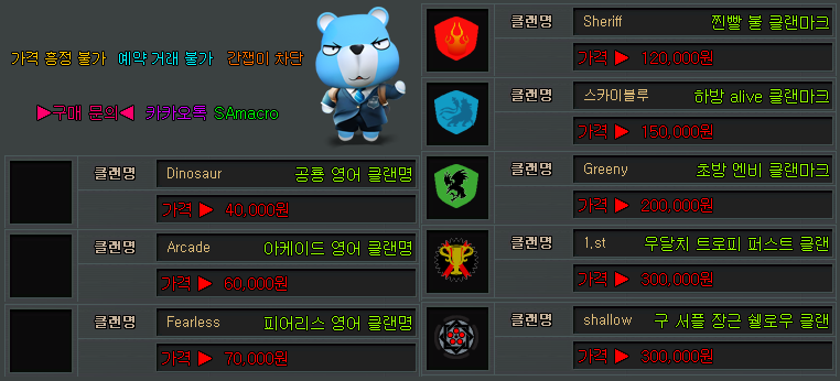 각종 클랜명&클랜마크 판매