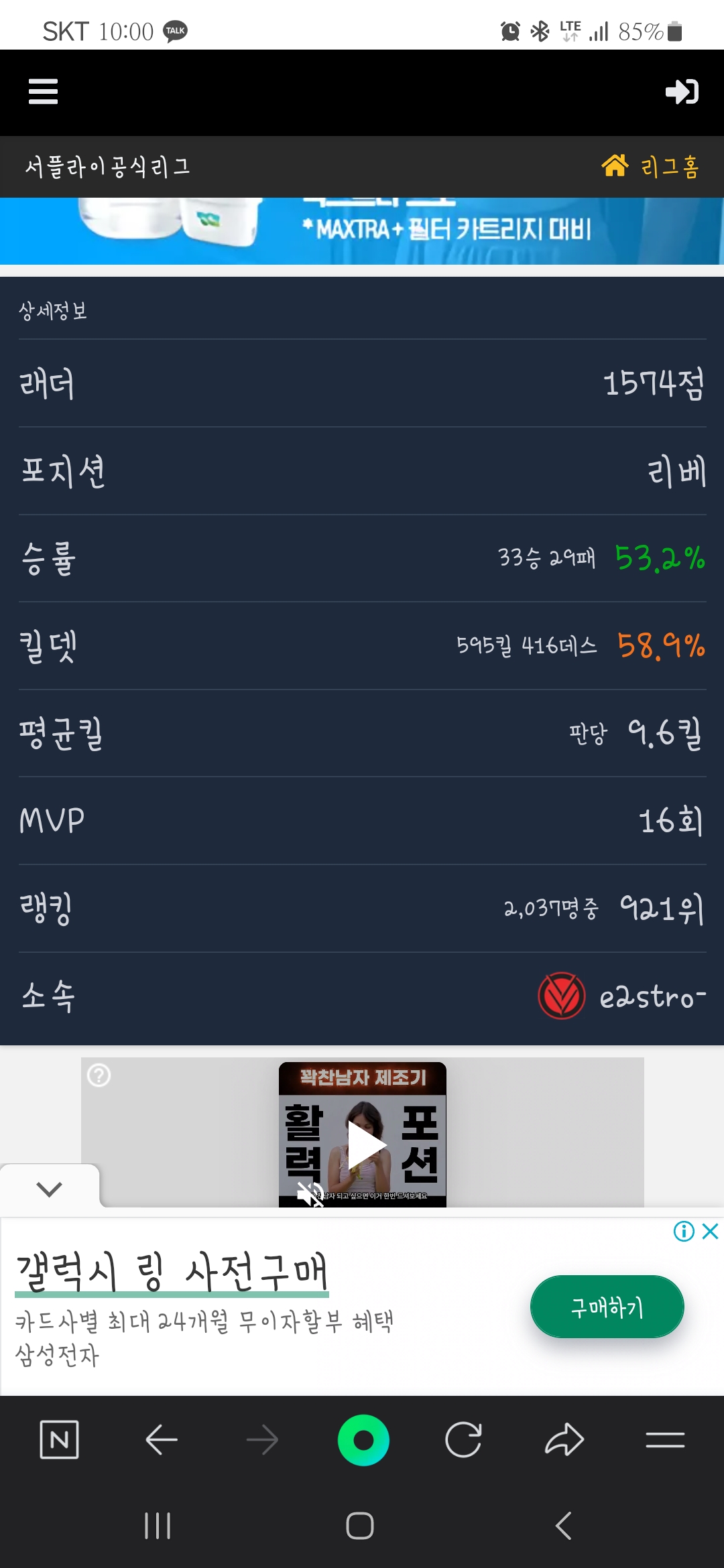걍 개킬딸임 매라운드 세이브찬스 킬뎃이랑 승률차이보셈