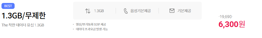 [THE 착한 데이터 유심 1.3GB] 월6,300원