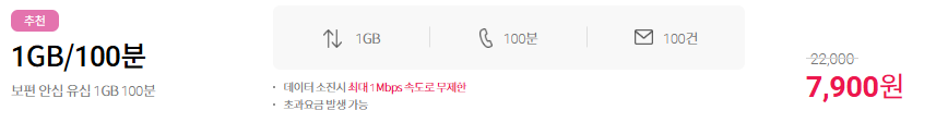 [보편안심유심 1GB 100분] 월7,900원
