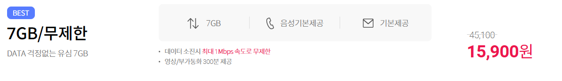 통화 & 문자 무제한 데이터 7GB