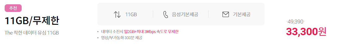 [THE 착한 데이터 유심 11GB] 월33,300원