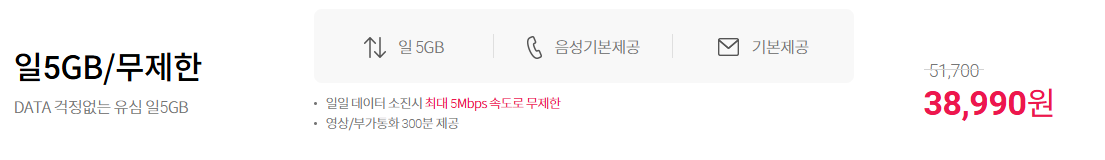 ※ 데이터 소진 시 최대 5Mbps 속도로 무제한
