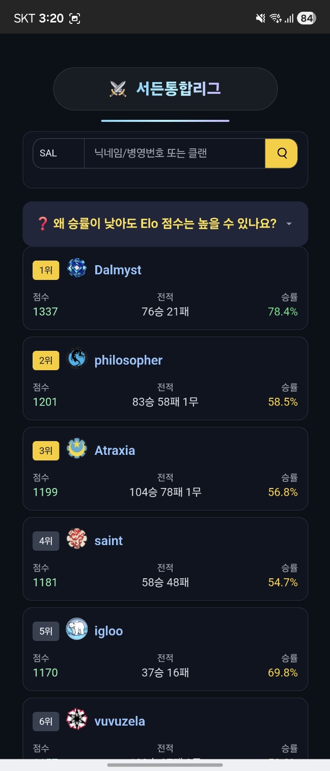 통합 리그 오픈했습니다