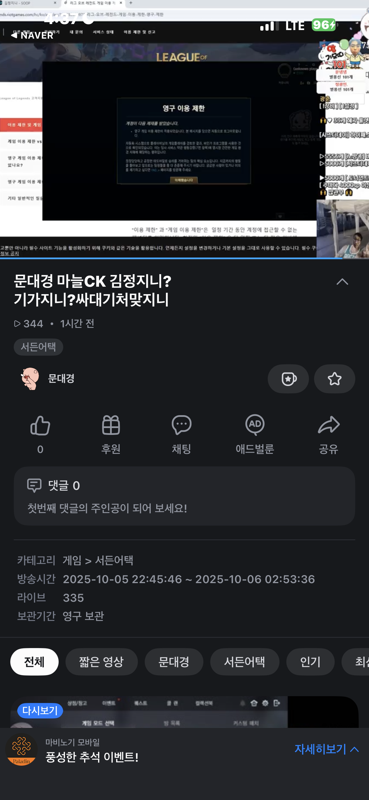 문대경 핵쟁이 ㅋㅋㅋㅋ 롤도 정지먹었네
