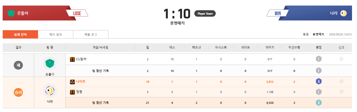 시즌계급 25등 나이트