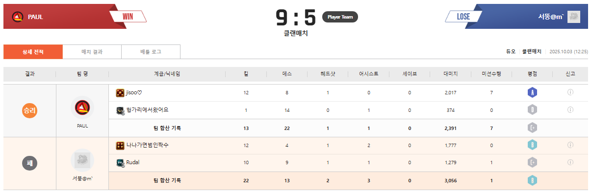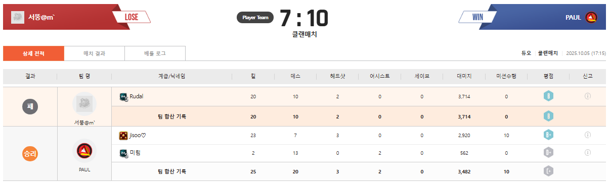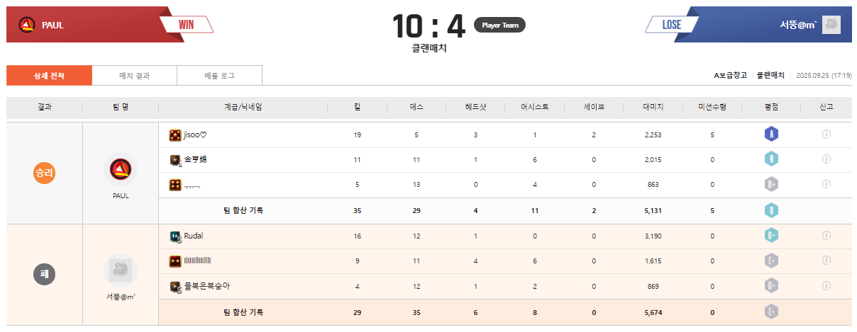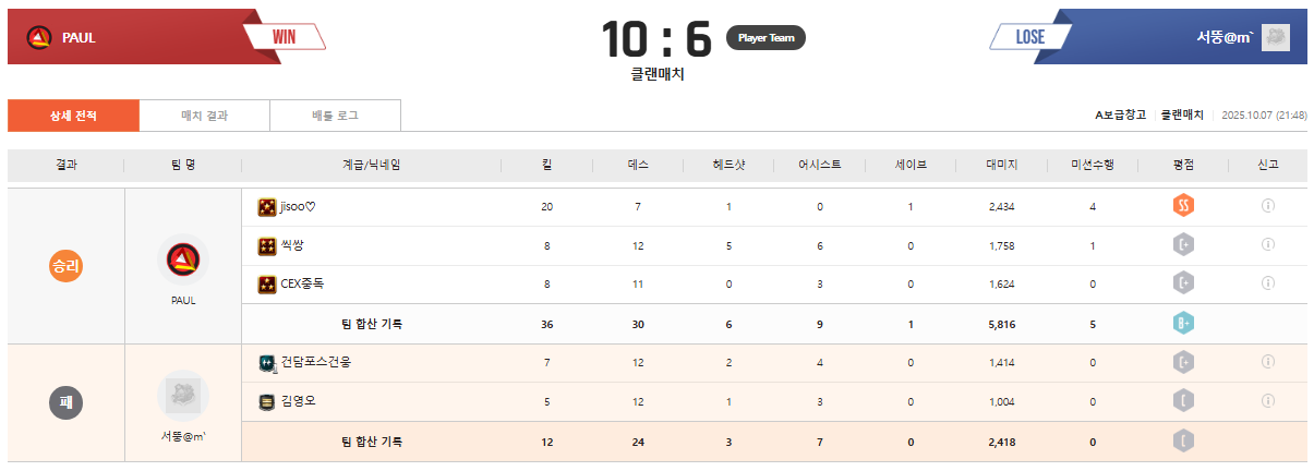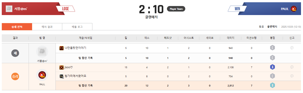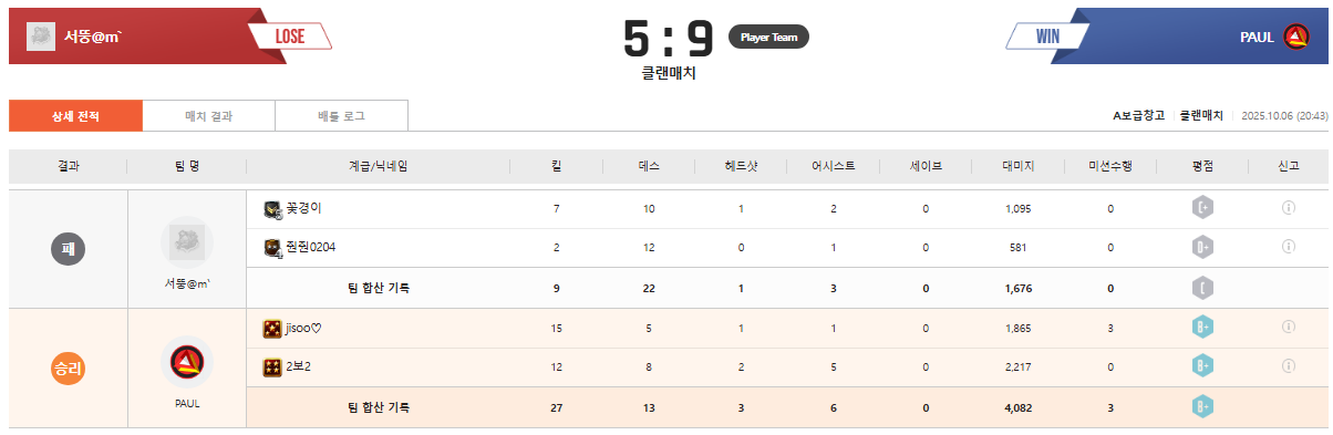 같은클랜 몇일연속 만나는건 양사가 맞냐 ? 머리에 똥이찼나 ㅋㅋ 어뷰 신고 맨날 넣어줄게