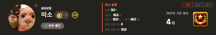 https://barracks.sa.nexon.com/1275383245/match 랭킹4등 미소