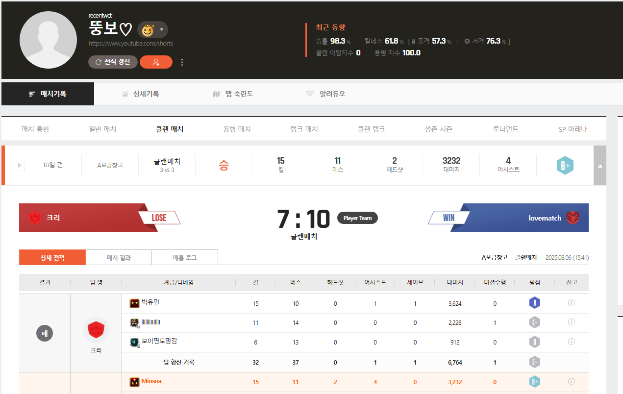 신기하게도 병영에 민스나 닉네임 찍혀있는분이 경호리센트를 달고 핵의심을 받고있네요?