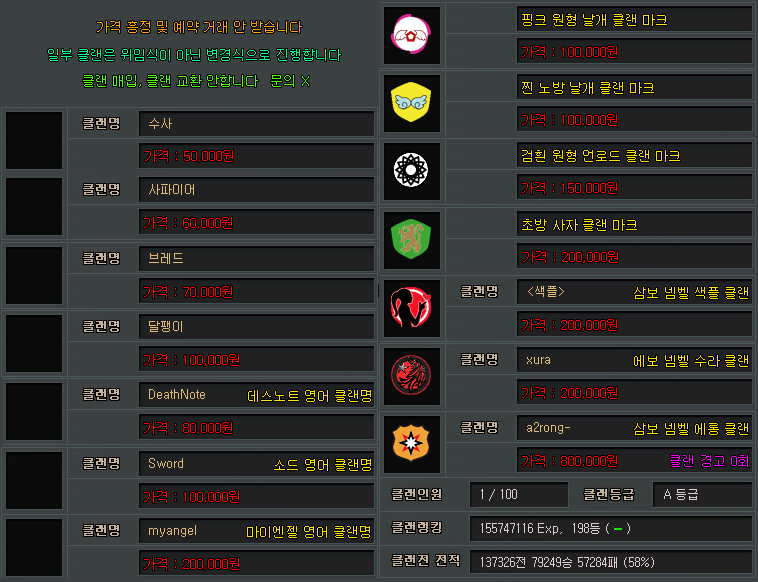 [10/16] ⭐ 각종⭐닉네임⭐클랜⭐판매⭐