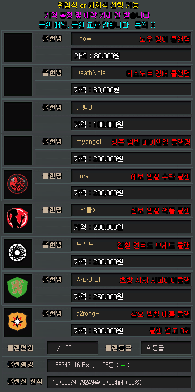 [10/19] ⭐각종⭐닉네임⭐클랜⭐판매⭐