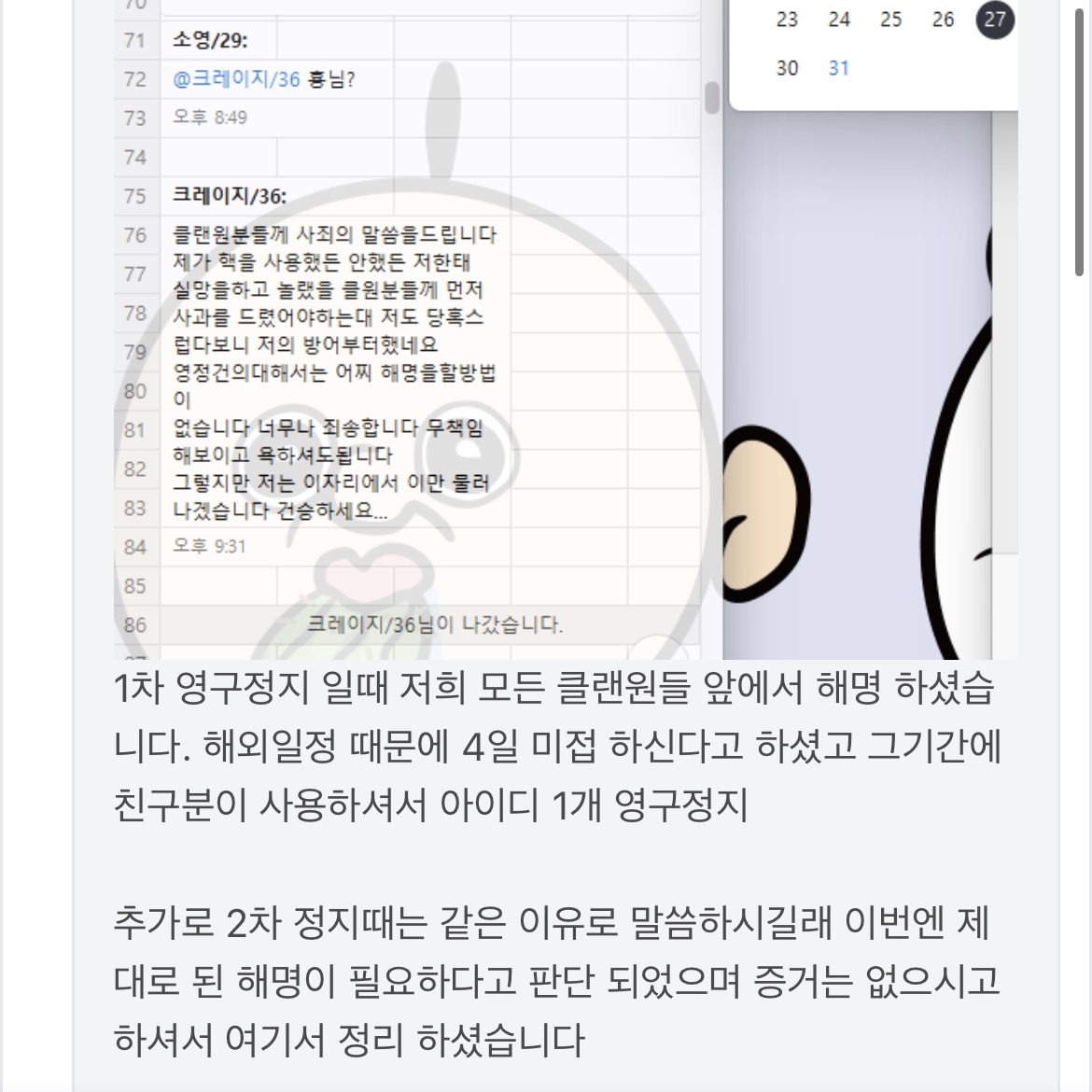 하지만 전클랜에서 자백은함..ㅎㅎ