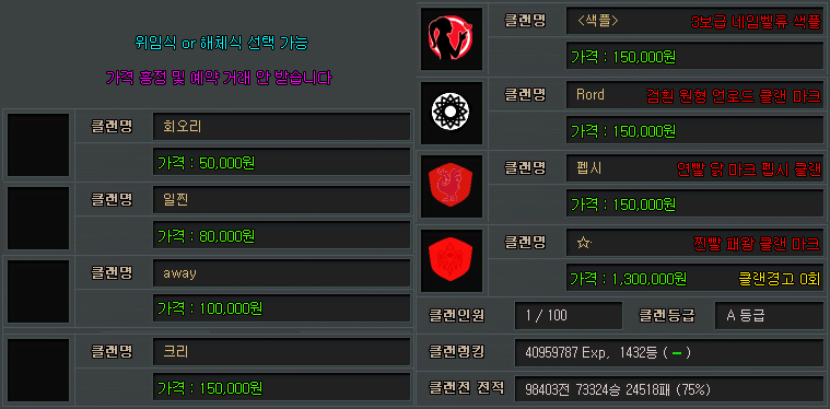 [11/08] ⭐각종⭐닉네임⭐클랜⭐판매⭐
