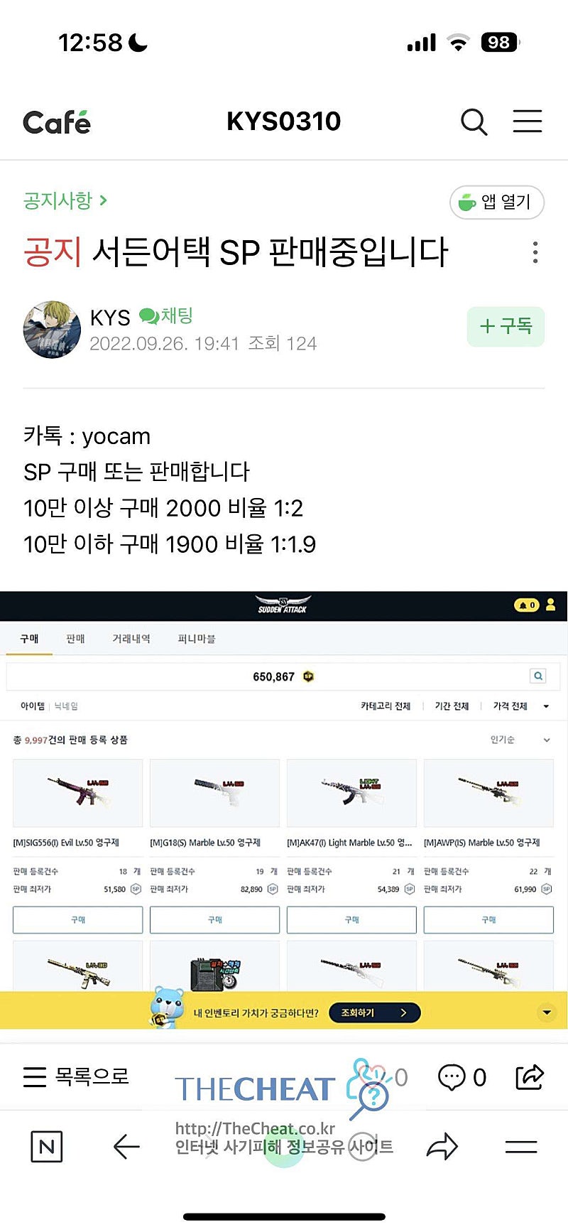 카페에는 사기친sp들을 거래내역이라고 올립니다.