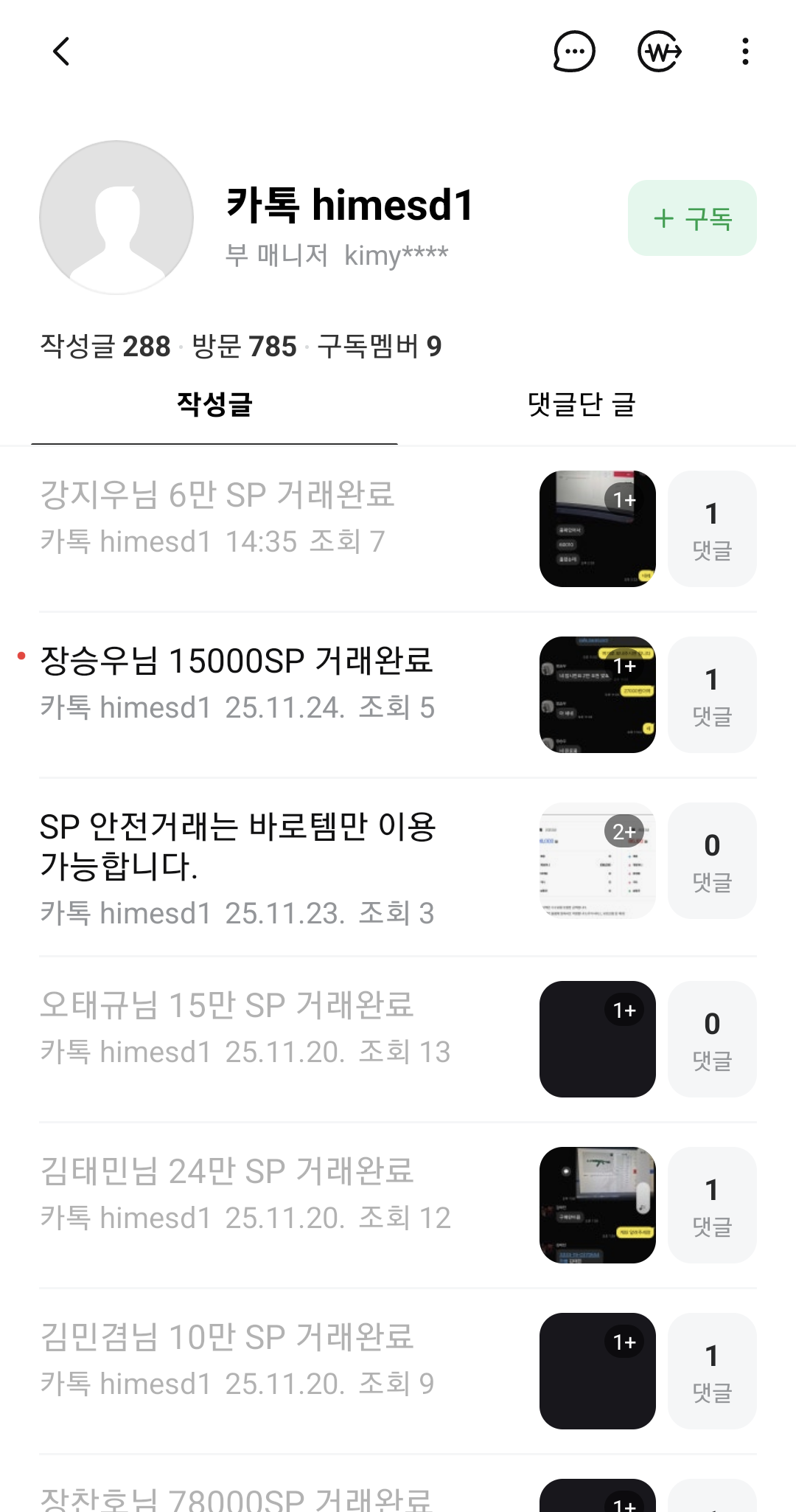 댓글에는 부캐로 거래완료한척 댓글작업까지 칩니다.