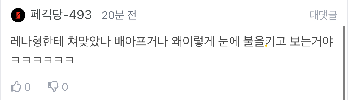 두번째 밑 일침 글 레x 본인 인정 댓글