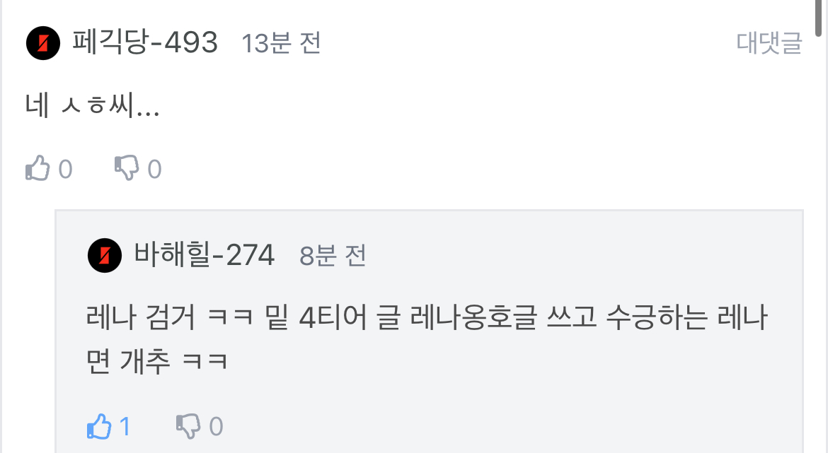 첫번째 밑 4티어 글 레x 옹호 댓글