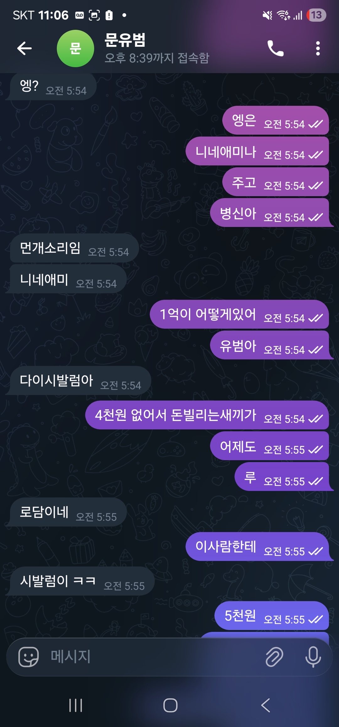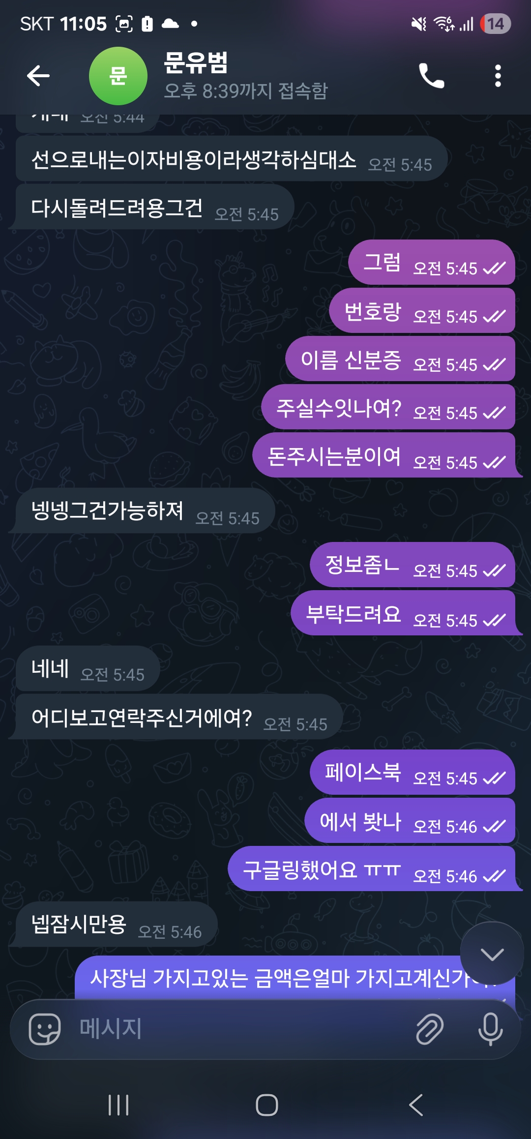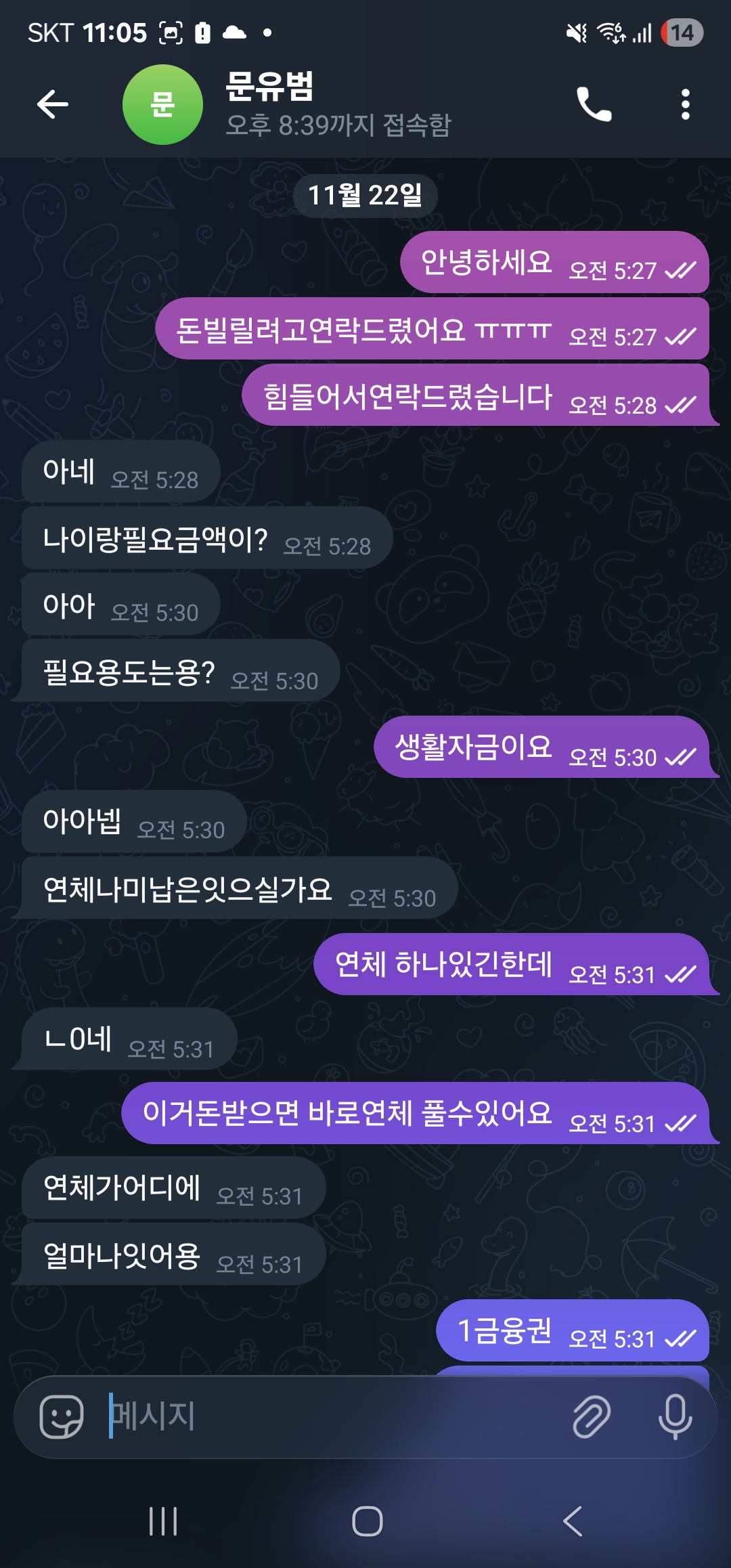 그와중에도 문유범은 텔레그램으로 사기를칠라고하던군요? ㅋㅋㅋㅋㅋㅋㅋㅋㅋㅋㅋㅋㅋ