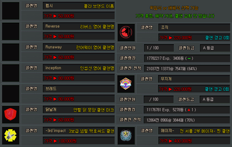 ███각종███클랜명███클랜마크███판매███